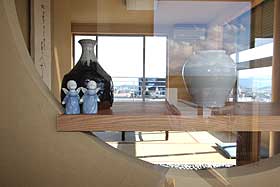 飾り棚にも趣味の陶器が飾ってあります。