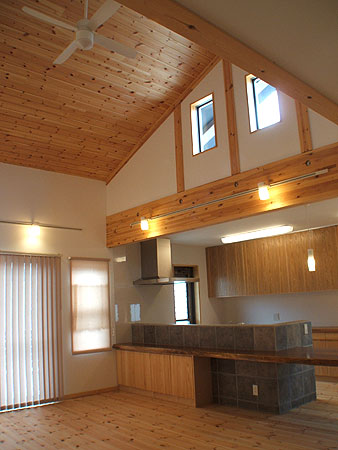 12.5帖の吹き抜け(斜天井)のリビングは開放感たっぷりです。
