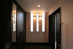 | 玄関ホールでは3つのスリットサッシがお客様を迎えます。 |