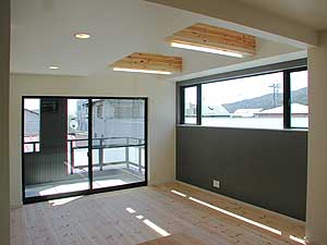 吹き抜け面に設けられた窓からは、