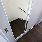 リビングから階段を上った所には建具があります。 冬は暖房で温まった空気が2階へ逃げていくのを防ぎます。大きなガラスの建具なので階段を暗くすることもありません。