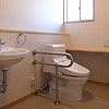 トイレも広々とした空間で、肘掛を取り付けてあります。