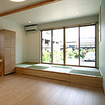 リビングの畳コーナーは、床を30cm上げて、ちょっと腰掛けるのにいい高さです。下には収納があり、子供たちのおもちゃなどしまえます。