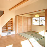 L・D・Kから和室まで解放された広々空間です。日当たりも良く仲間が集まりゲームやお喋りに花を咲かせるオープンスペースです。リビングと和室の両方からテレビを楽しめるよう設計しました。