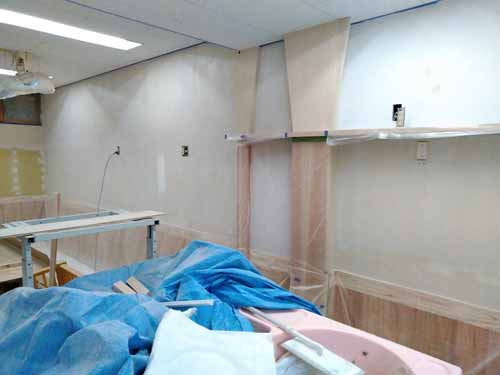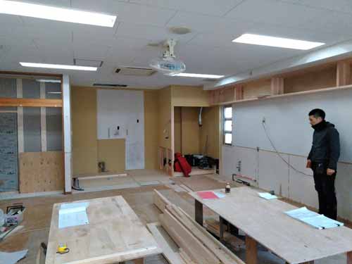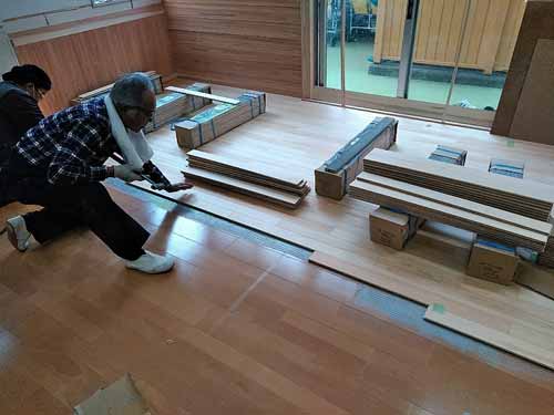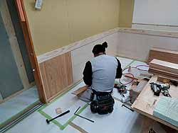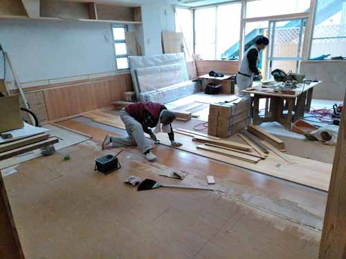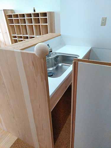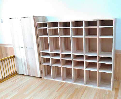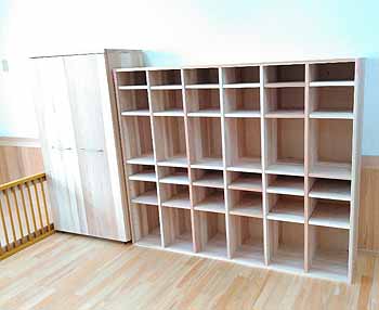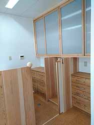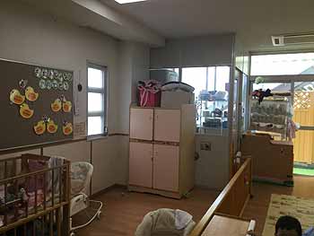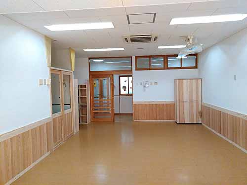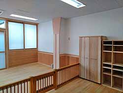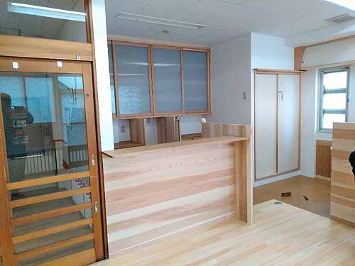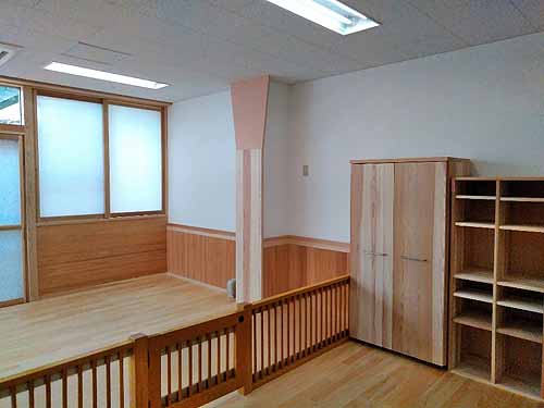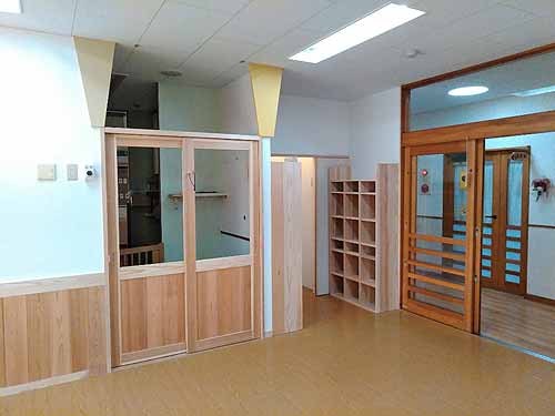 「保育園での工事ということもあり、子供たちの安全に 気を配りながら短い工期で作業するのに苦労しましたが、 完成すると職員さんたちに、とても喜んでいただいて、本当に良かったです。 0歳児と1歳児の保育室でしたので、手の触れるところは けがをしないように、丁寧に角を丸く削って仕上げました。 肌触りの良い仕上がりになったと思います。