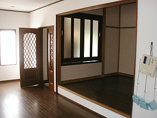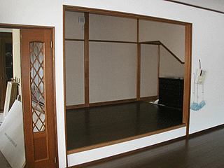 1階畳スペース→フローリング゙に変更・明かり取りと風を通すために一部壁開口して引き違い建具取付