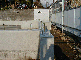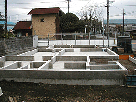 | 【2】・・・2007年1月12日撮影・・・基礎工事完了。 高い精度で作られた基礎がSE構法の骨組みを支えます。 |