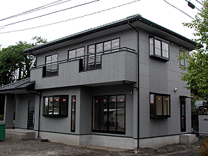 外壁ALC版への吹き付け塗装工事がおわりました。 足場に掛けてあった養生ネットをはずしましたので、ようやく建物全体が見えるようになりました。 本日、仕上がりおよび色のチェックを行いました。写真では分かりにくいと思いますが、御影石調の多彩色仕上げ塗料をつかって吹き付けを行いましたので、実物はこの写真より重厚な感じの仕上がりとなっています。いい感じの仕上がりです。 |