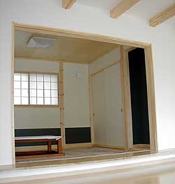 ![]() 和室の壁は全面和紙貼りとしました |