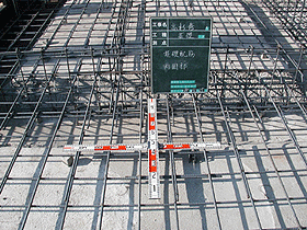 | 【1】・・・2006年12月25日撮影・・・基礎配筋工事完了。 太い鉄筋が狭い間隔で入って強い基礎を作ります。 |