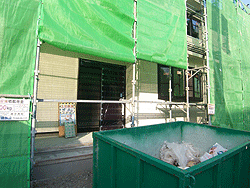 ![]() 外部足場と養生ネットで建物の様子が見えませんが、着々と工事進行中です。