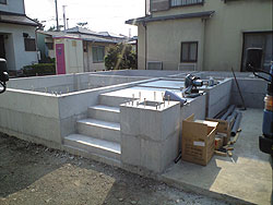 ![]() 敷地に一部高低差をつけ、ガレージに使用します。 そのため、部分的に高基礎になっています。 |