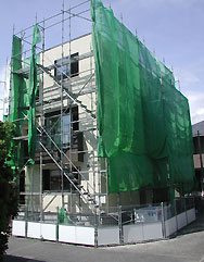 ![]() 外壁のALCは吹き付け塗装が終わりました。もうすぐ足場も外せます。 |