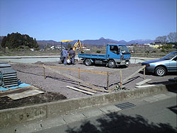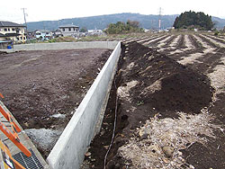 ![]() 農地と宅地の境界を明確にする必要もあり見切り・擁壁を造りました。 建築確認もおりました。埋め戻し、整地後いよいよ建築工事の着工となります。 |