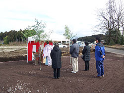 ![]() ご夫婦とご主人のお母さんも参加されて、工事の無事安全を祈念して地鎮祭が行われました。 |