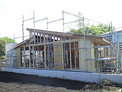 | 【9】・・・2009年4月26日撮影・・・屋根下地 | 【10】・・・2009年4月26日撮影・・・建方 | ||||||||