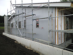 | 【11】・・・2009年4月29日撮影・・・建方工事完了 | 【12】・・・2009年5月19日撮影・・・外壁ガルスパン貼り | ||||||||