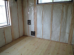 | 【13】・・・2009年5月27日撮影・・・天井・屋根面射熱フィルム | 【14】・・・2009年5月27日撮影・・・壁断熱工事 | ||||||||