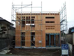 ![]() 耐力壁も施工され、SE構法としての骨組みは完成しました。 |