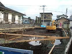 ![]() 基礎を作るために地盤を削り、平らな面をつくっていきます。 |