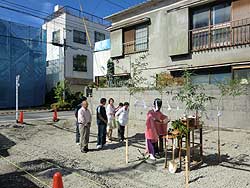 | 【1】・・・2010年8月17日撮影・・・解体工事 | 【2】・・・2010年8月28日撮影・・・地縄 | 【3】・・・2010年8月29日撮影・・・地鎮祭 | |||||