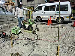| 【4】・・・2010年8月31日撮影・・・地盤調査 | 【5】・・・2010年9月13日・・・地盤改良工事 | 【6】・・・2010年9月15日撮影・・・水盛り遣方 | |||||