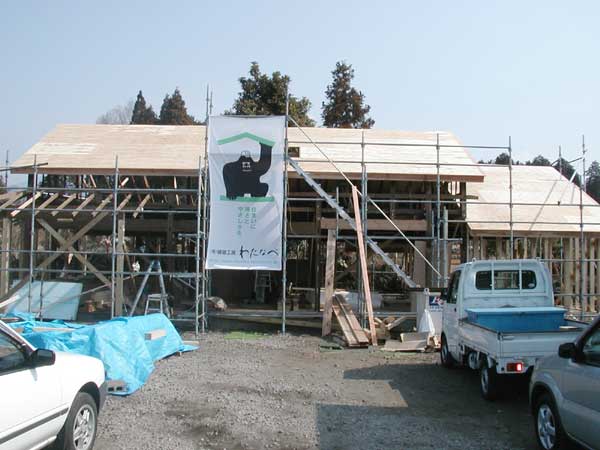 | 【9】・・・2012年3月28日撮影・・・野地合板施工状況 全景
