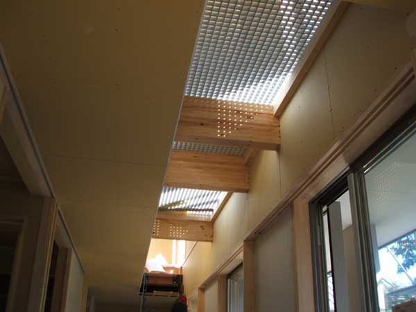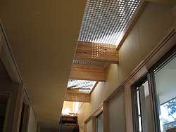 ![]() 廊下。 サッシ寄りの部分は2階床にグレーチングが入ります。 |
