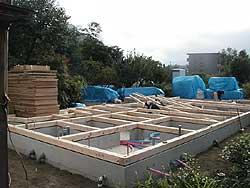 | 【9】・・・2012年7月27日撮影・・・土台設置完了 | 【10】・・・2012年7月27日撮影・・・床断熱材施工 | ||||||||||