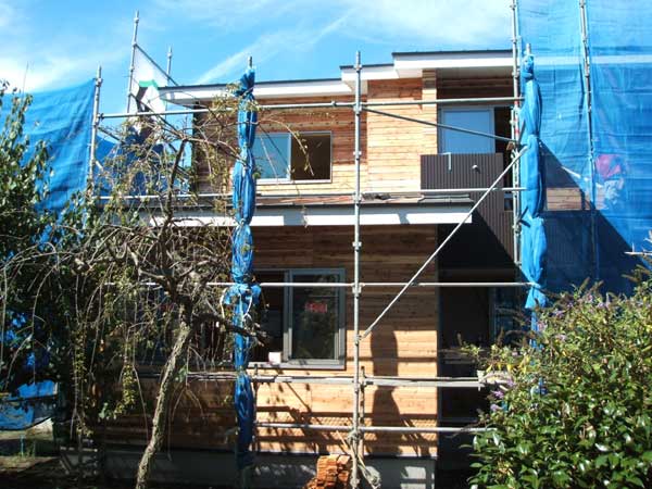 ![]() ガルスパン部施工完了。塗り壁部は下地の「あらし」施工完了。 |
