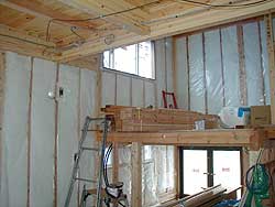 ![]() 外部に接する壁には断熱・気密工事をしていきます。 |