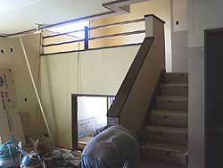 ![]() 壁下地ボードを順次施工中、スキップフロアの感じが見えてきました。 |