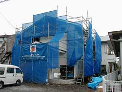 ![]() 外壁サイディング工事進行中。足場撤去まであと少しです。 |
