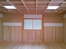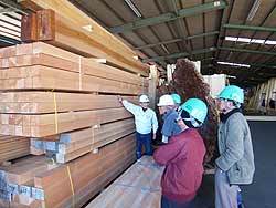 ㈱マルダイにて、材料検査を行いました。一般住宅で使う材料を見ていただいた後、神社で実際に使う材料を見ていただきました。年輪の幅や材料の色目の違いなど、マルダイ藤田専務の説明に神社役員の皆さんも納得。 比較していただくと、違いは一目瞭然です。 実際の材料を見ていただき、皆さん大満足ということで、大変喜んでいただけました。 いよいよ本格的に加工作業に入ります。 材料検査のあと、横綱 朝青龍よりマルダイに送られた、「優勝額」の前で神社役員の皆さんと記念撮影をしました。 |