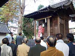![]() 石坂熊野神社にて、神社建て替えの間、ご神体を仮の住まいに移す神事 『仮殿遷座祭(かりでんせんざさい)』 が行われました。 |