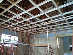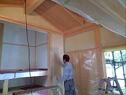 | 【17】・・・2010年5月31日撮影・・・天井竿縁設置 | 【18】・・・2010年5月31日撮影・・・外壁フェルトラス網工事 | |||||||