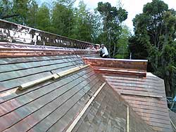| 【19】・・・2010年6月11日撮影・・・屋根箱棟銅板包み | 【20】・・・2010年6月11日撮影・・・ケラバ部銅板葺き | |||||||