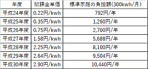 そしてこの再エネ賦課金の単価が毎年増え続けていることに気が付いていますか?
