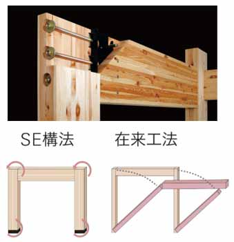 SE構法は接合部が強靭であることにより、柱と梁のみで揺るぎない強度の骨組を生み出すことが出来ます。