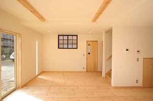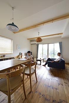 パイン無垢フロアと化粧梁で温かみのあるリビング空間を演出します。