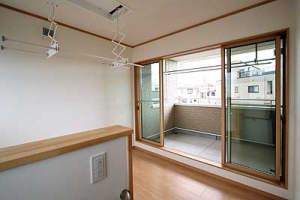 2階の室内物干しスペースもこだわった場所です。電動室内物干しユニット「ホシ姫サマ」は大活躍しています。日当たりも良く、風通しも最高なので、洗濯物が干してあっても立派なセカンドリビングとして機能しています。