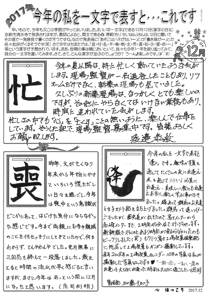 > 手書きシリーズ「今年の私を一文字で表すと・・・これです!」