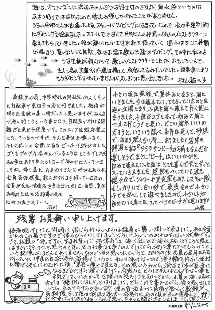 > 手書きシリーズ「私の『海』の思い出は・・・」