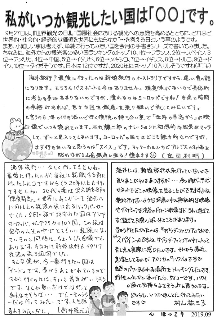 > 手書きシリーズ「私がいつか観光したい国は・・・」
