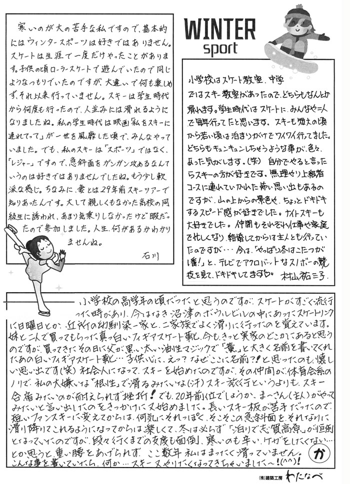 > 手書きシリーズ「私の好きなウィンタースポーツ」」
