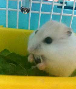 食事中のハム太郎、冬でも食欲は旺盛です。