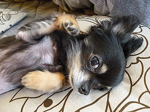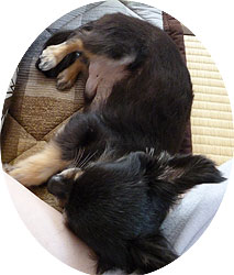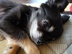| 毛色が黒っぽくて、「ショコラ」という感じでしたので、この名前にしました。一事、体重が増えて3kg超えてしまい、心臓にもあまりよくないので頑張ってダイエットして、ここまで落としました。 |