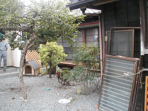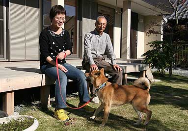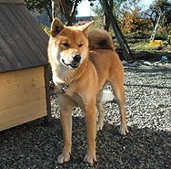 生まれてちょうど1歳、体はすっかり大人でもまだまだいたずらっ子。短い紐でつないでおくのは可哀想だと思い、長い紐でつないでおいたら、エアコンの配管をかじったり、新築の家の玄関の壁をひっかいたり・・・もう大変でした。人なつっこいのでお客様が来るととても喜んで、すぐ飛びついてしまいます。営業の石川さんはいつもス-ツを着て来るので、飛びかかられないように逃げ回っていました(笑)建築工房わたなべさんにお願いして、フェンスで桃助の動けるエリアをフェンスで囲ってもらい、桃助の家も新築してもらいました。